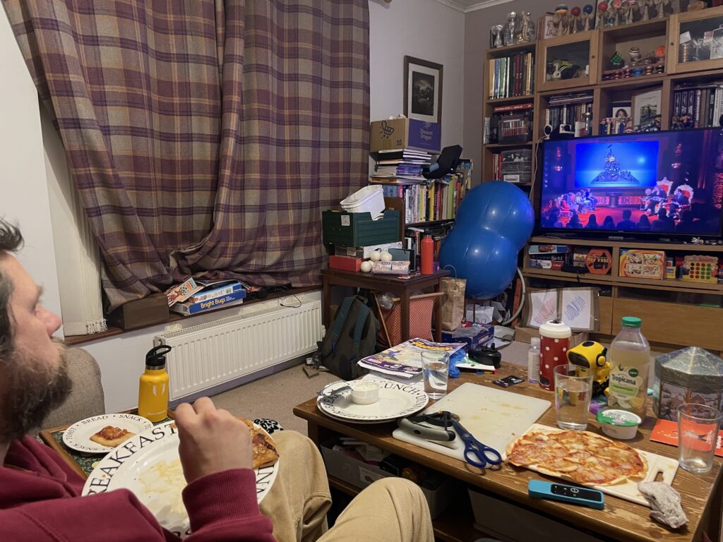 As a kid, I have really fond memories of watching Gladiators with my family and was keen to recreate something similar with my kids. So every Friday night, we sit down as a family and watch Taskmaster. We have a ‘junk’ dinner of something like chicken nuggets/pizza/burgers and we all snuggle up on the sofa, eat in front of the TV and discuss how we would each approach each task.