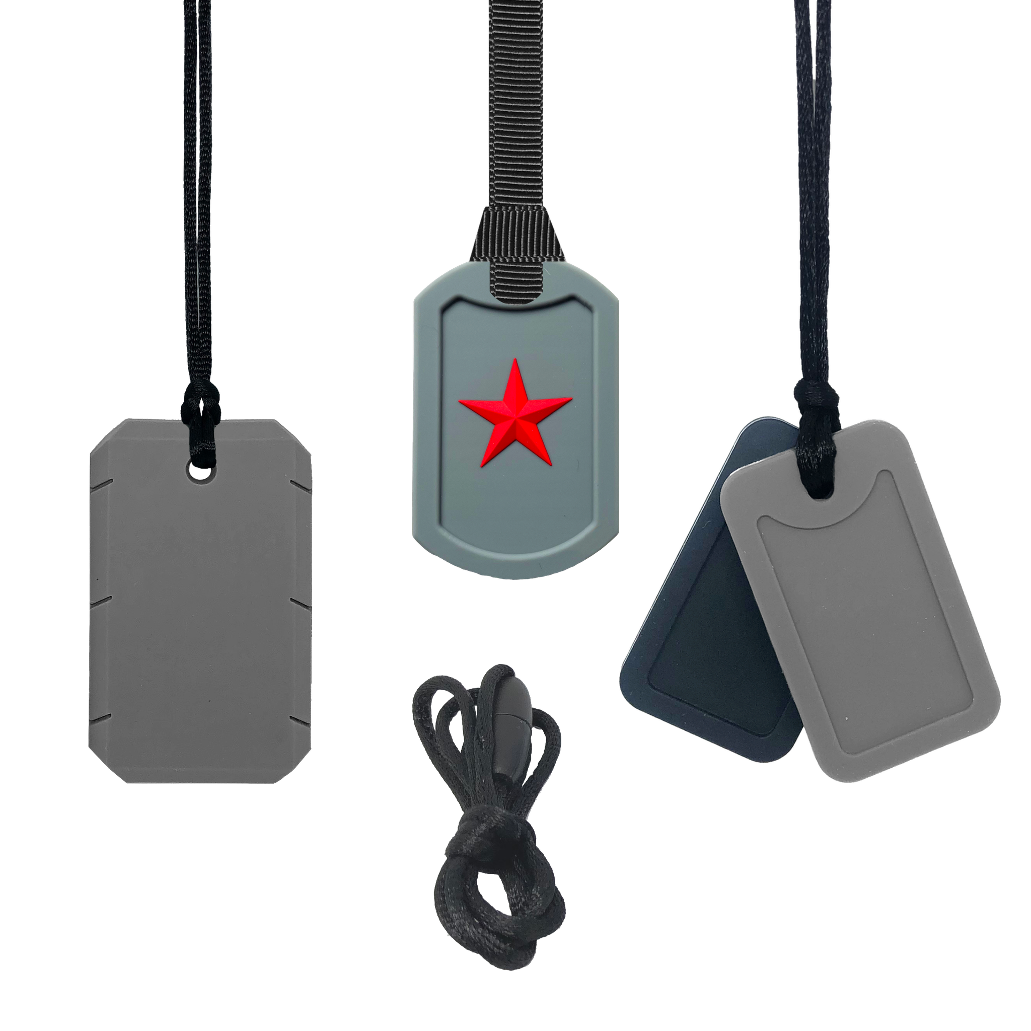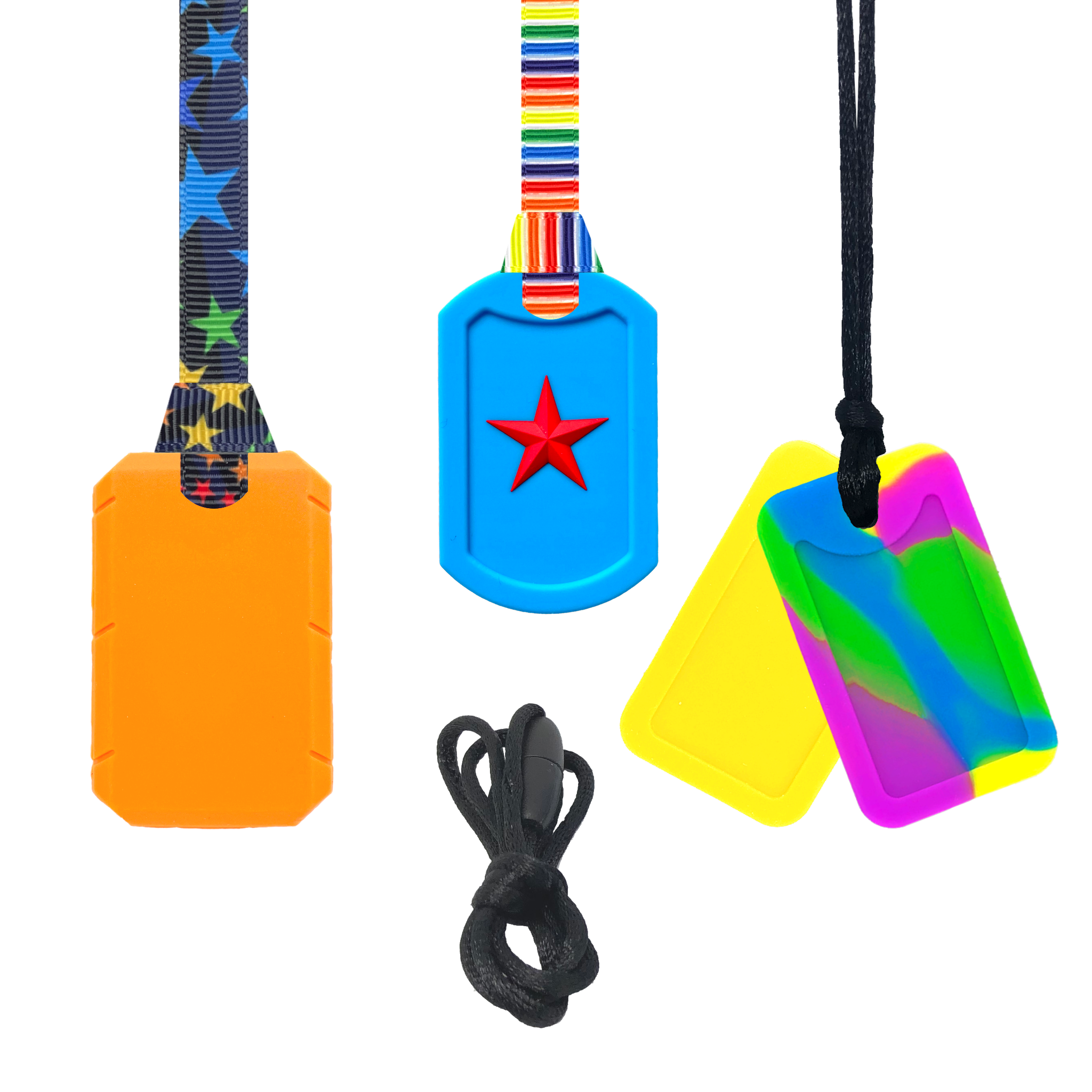 Oojamabobs Tags Chew Set includes three of our best-selling tag-shaped chews — perfect for sensory seekers who love smooth, simple shapes and discreet designs. Each set also includes a spare black cord for easy swapping.
