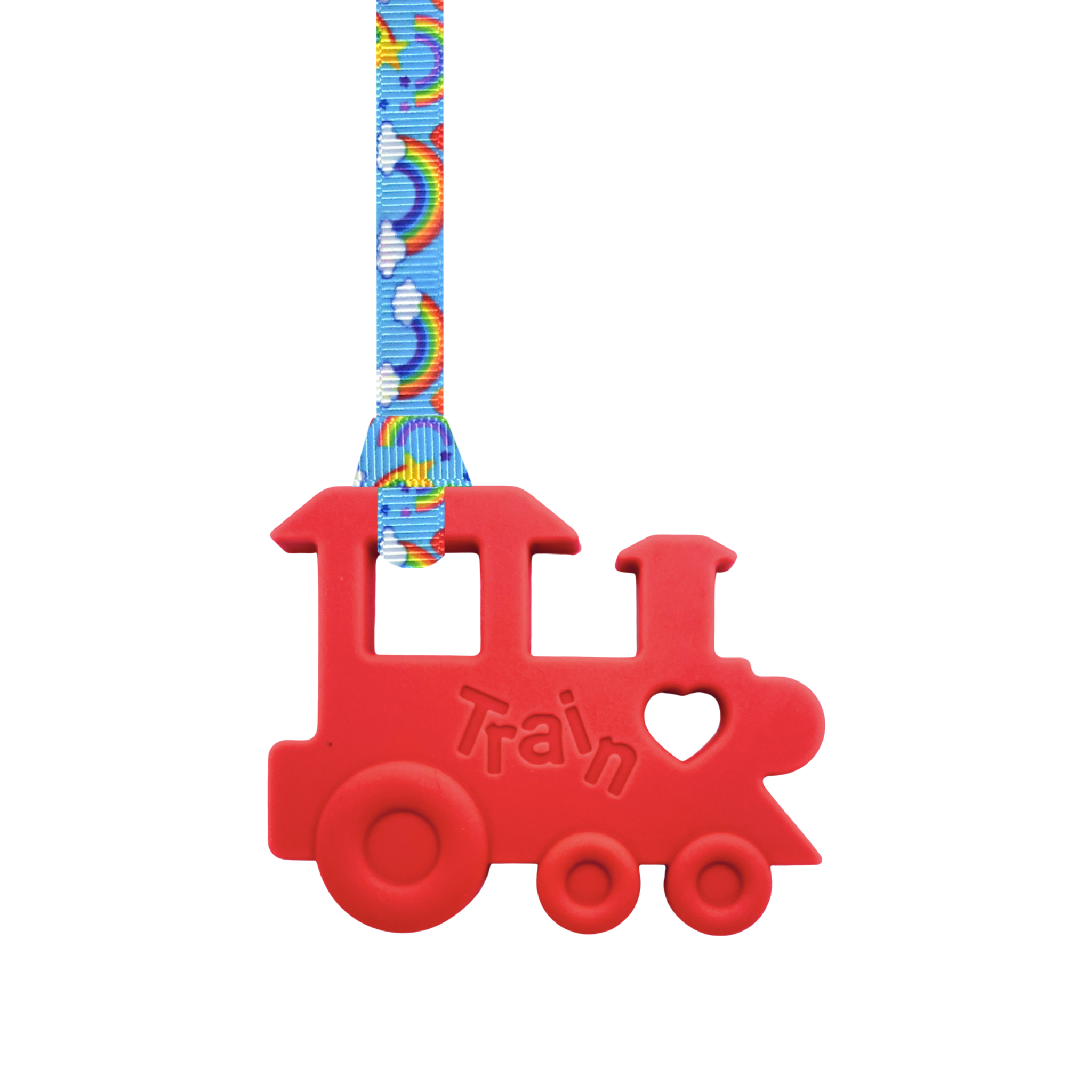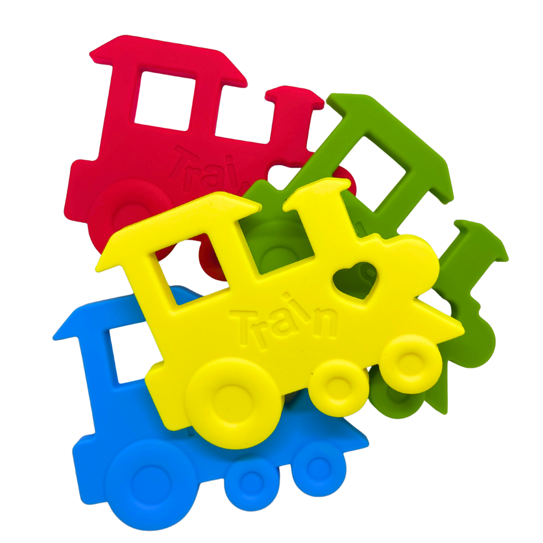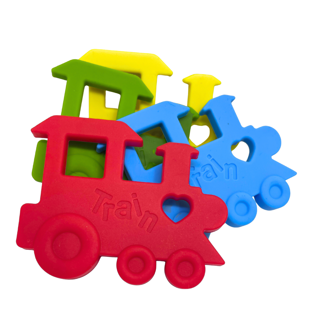 Train Chew Necklaces are large, bright, sensory chews made from soft, flexible, food-grade silicone. These chew necklaces measure 70mm x 90mm and are roughly 8mm thick.